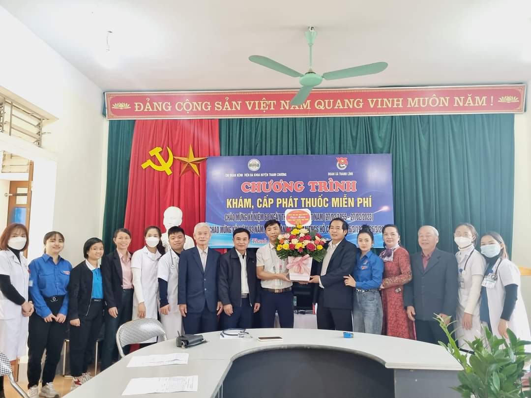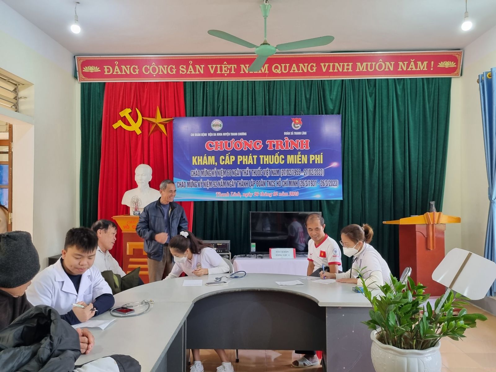 Nằm trong chuỗi hoạt động hướng tới kỷ niệm 68 năm "Ngày Thầy thuốc Việt Nam 27/2/1955-27/2/2023". Sáng ngày 26/2/2023 Chi đoàn Bệnh viện đa khoa huyện Thanh Chương phối hợp với Đoàn xã và Hội người cao tuổi xã Thanh Lĩnh tổ chức Chương trình Khám và cấp phát thuốc miễn phí cho đối tượng Người cao tuổi trên địa bàn xã.