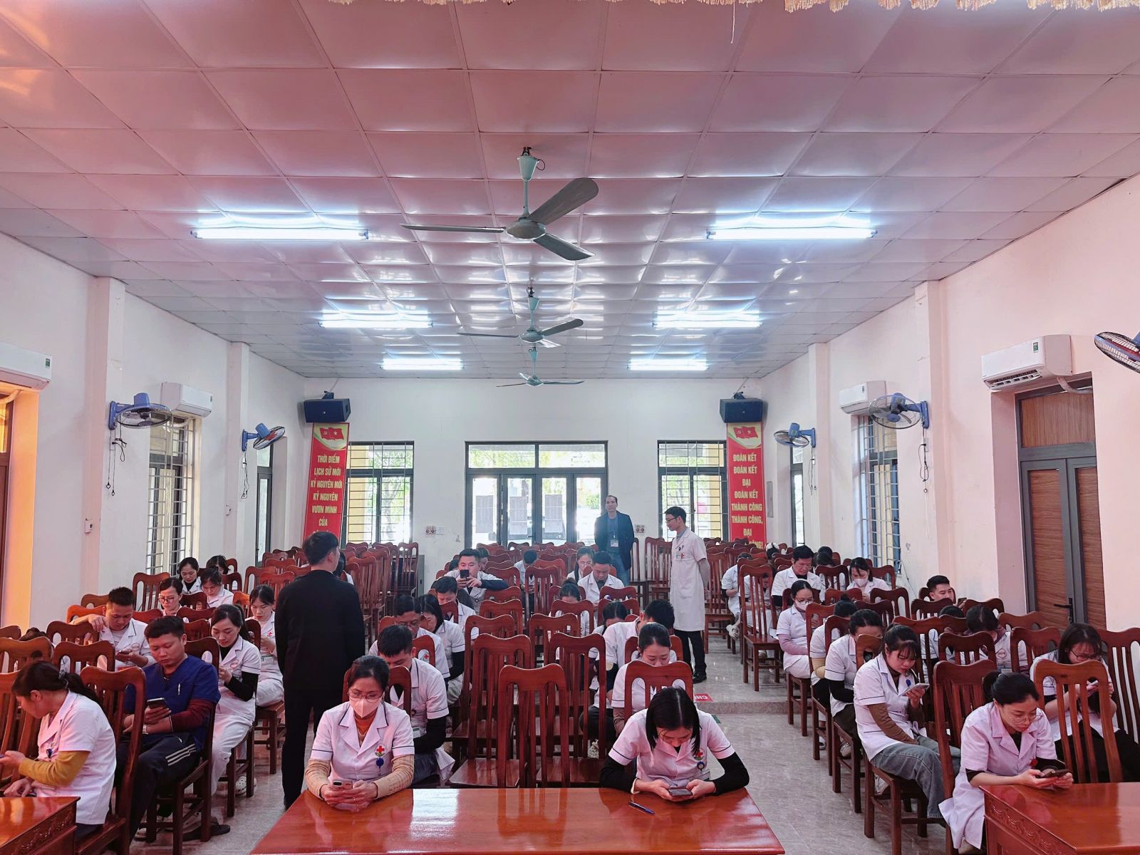 Trong lĩnh vực y tế, chuyên môn vững vàng của đội ngũ Bác sĩ, Điều dưỡng, Kỹ thuật viên và Hộ sinh luôn là nền tảng quyết định chất lượng khám chữa bệnh. Mỗi nhân viên y tế không chỉ cần kiến thức sâu rộng, mà còn phải thường xuyên rèn luyện kỹ năng, cập nhật những tiến bộ mới và giữ vững tinh thần trách nhiệm với sức khỏe cộng đồng. Nhằm thúc đẩy tinh thần học tập, nâng cao năng lực chuyên môn và chuẩn hóa kỹ năng nghề nghiệp cho toàn bệnh viện, chiều ngày 19 và ngày 20 tháng 11 năm 2025, Bệnh viện Đa khoa Thanh Chương đã long trọng tổ chức Hội thi Kiến thức Chuyên môn Y tế năm 2025 tại hội trường lớn.