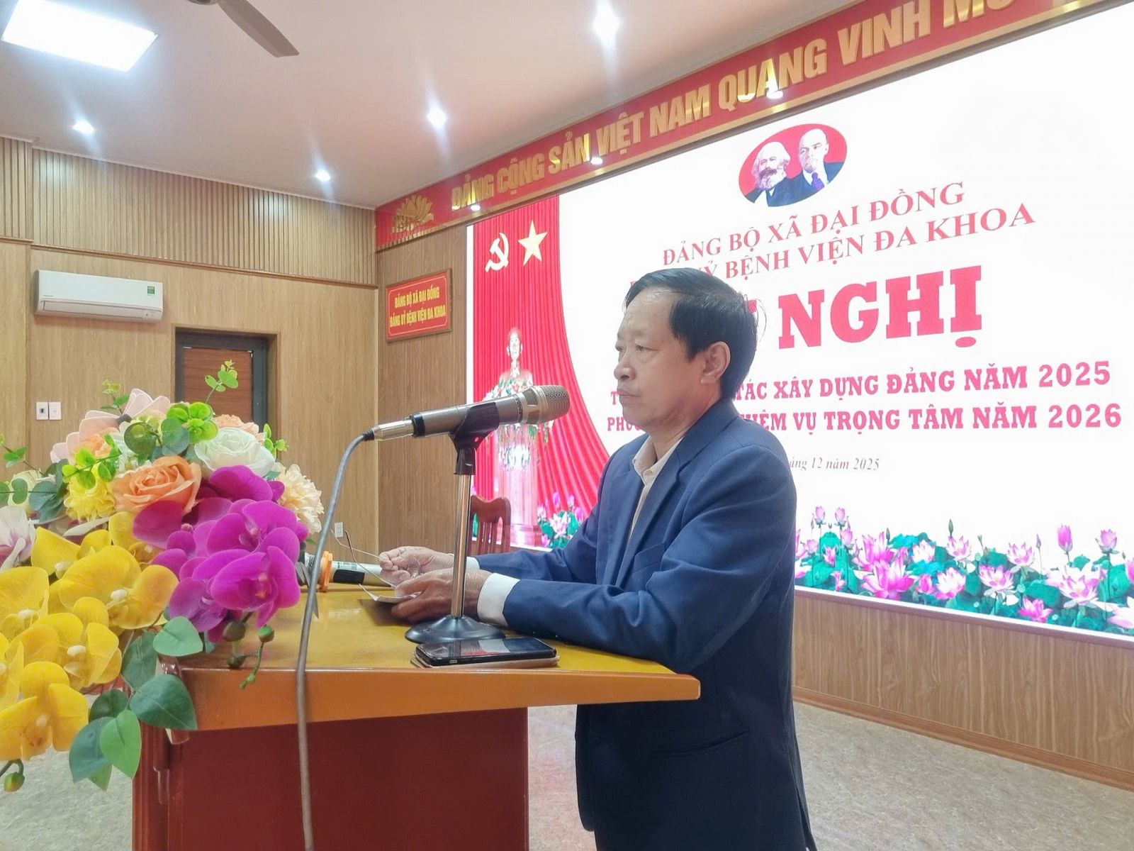 Phát biểu tại hội nghị, đồng chí Nguyễn Thịnh Khuyên – Bí thư Đảng ủy Bệnh viện nhấn mạnh: Ngay từ đầu năm, Đảng ủy Bệnh viện đã ban hành đồng bộ các nghị quyết, chương trình, kế hoạch nhằm lãnh đạo, chỉ đạo công tác xây dựng Đảng gắn với thực hiện nhiệm vụ chính trị. Đảng ủy đã chỉ đạo tổ chức thành công Đại hội các chi bộ trực thuộc và Đại hội Đảng bộ Bệnh viện nhiệm kỳ 2025–2030; đồng thời lãnh đạo đơn vị hoàn thành tốt nhiệm vụ chuyên môn, bảo đảm công tác khám, chữa bệnh, thực hiện đạt và vượt các chỉ tiêu kế hoạch đề ra.