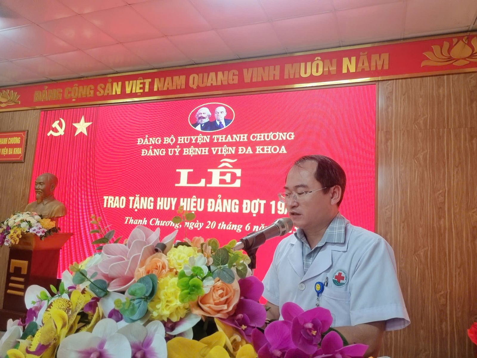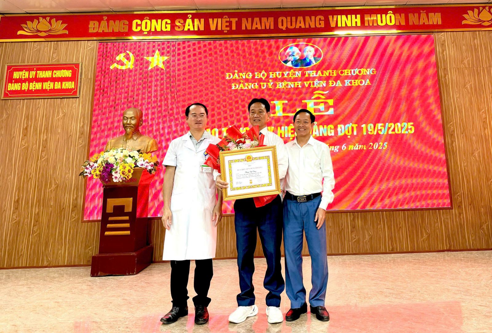 Chiều ngày 20 tháng 6 năm 2025, Đảng ủy Bệnh viện Đa khoa Thanh Chương long trọng tổ chức lễ trao tặng Huy hiệu 40 năm tuổi Đảng cho đồng chí Phạm Viết Thụy – đảng viên thuộc Chi bộ Cận Lâm Sàng