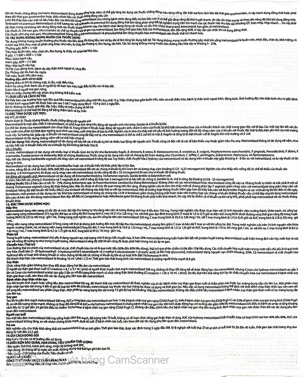 • Metronidazol 250 (viên)
